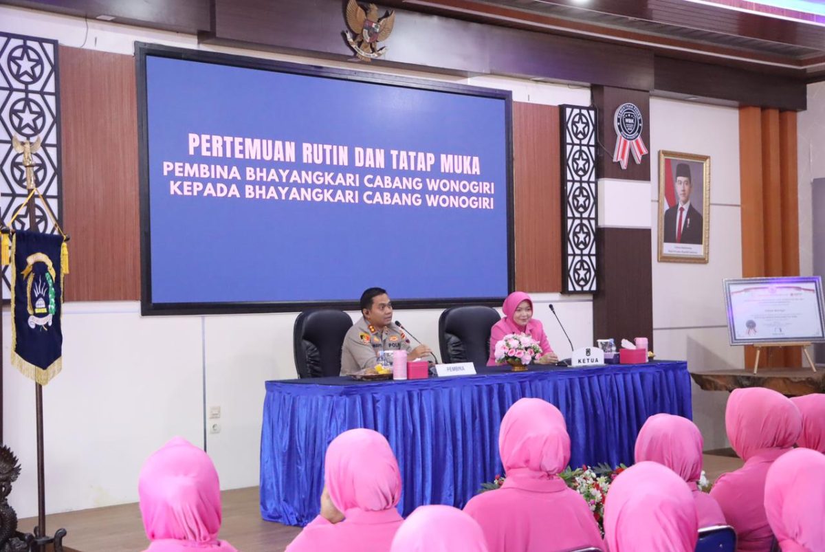 Dalam upaya mempererat silaturahmi dan meningkatkan peran Bhayangkari dalam mendukung tugas-tugas kepolisian, Polres Wonogiri menggelar kegiatan Tatap Muka Pembina Bhayangkari dan Pertemuan Rutin Bhayangkari Cabang Wonogiri, Selasa (14/10/2025) bertempat di Aula Sanika Satyawada Polres Wonogiri.