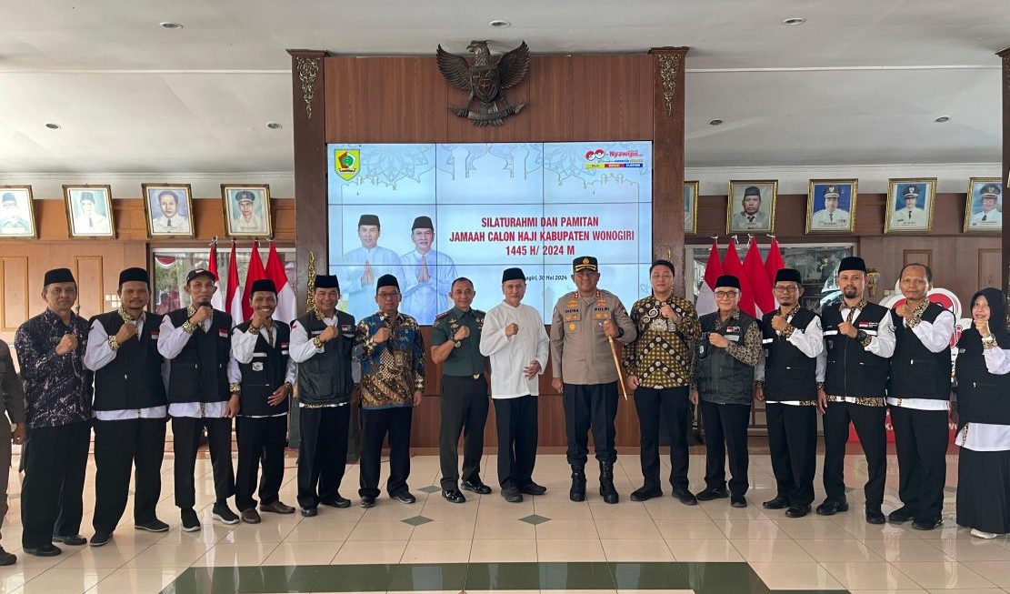 Kapolres Wonogiri AKBP Andi Muhammad Indra Waspada Amirullah, S.H., S.I.K., M.M., M.Si., turut menghadiri pamitan calon jamaah haji Tahun 1445 H/2024 yang digelar di pendapa Kabupaten Wonogiri, Kamos (30/5/2024).