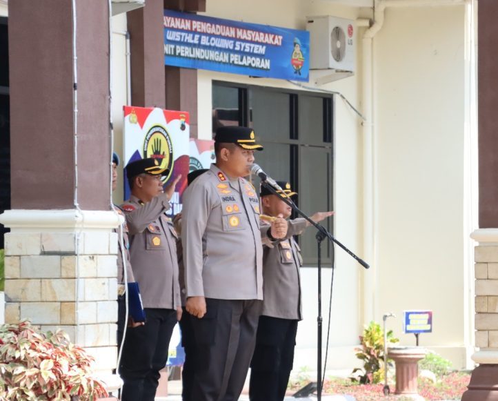 Kapolres Wonogiri AKBP Andi Muhammad Indra Waspada Amirullah, S.H., S.I.K., M.M., M.Si., didampingi Wakapolres Wonogiri Kompol Heru Sanusi, S.I.K., pimpin apel pelepasan personil BKO Polda Jateng ke kesatuan masing masing usai melaksanakan tugas pengamanan tahap pemungutan suara pada Pemilu 2024 di Kabupaten Wonogiri. Jumat (16/2/2024)