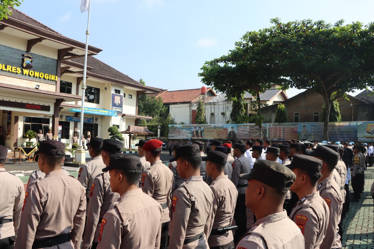 Dalam rangka pengamanan peringatan Hari Buruh Internasional atau May Day, Kapolres Wonogiri AKBP Jarot Sungkowo, S.H., S.I.K., memimpin langsung apel siaga di halaman Mapolres Wonogiri, Rabu (1/5/2025).