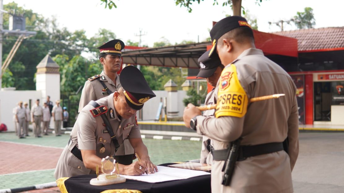 Upacara sertijab digelar di halaman Mapolres Wonogiri, Selasa (30/04/2024) dipimpin oleh Kapolres Wonogiri AKBP dan dihadiri pejabat utama di lingkungan Polres Wonogiri.