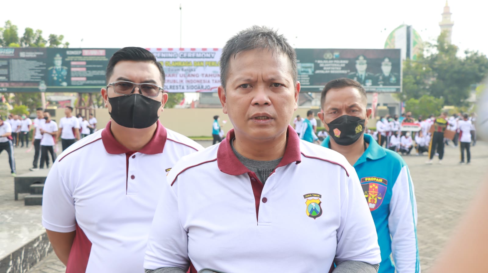 Usai pimpin upacara pembukaan lomba Agustusan, Kapolresta Sidoarjo Kombes Pol. Kusumo Wahyu Bintoro memberikan gimmick bagi anggota tentang wawasan cinta Tanah Air dengan hadiah sepeda gunung. Salah satu pertanyaan yang diberikan olehnya pada anggota adalah tentang Pancasila dan Undang-Undang Dasar 1945.