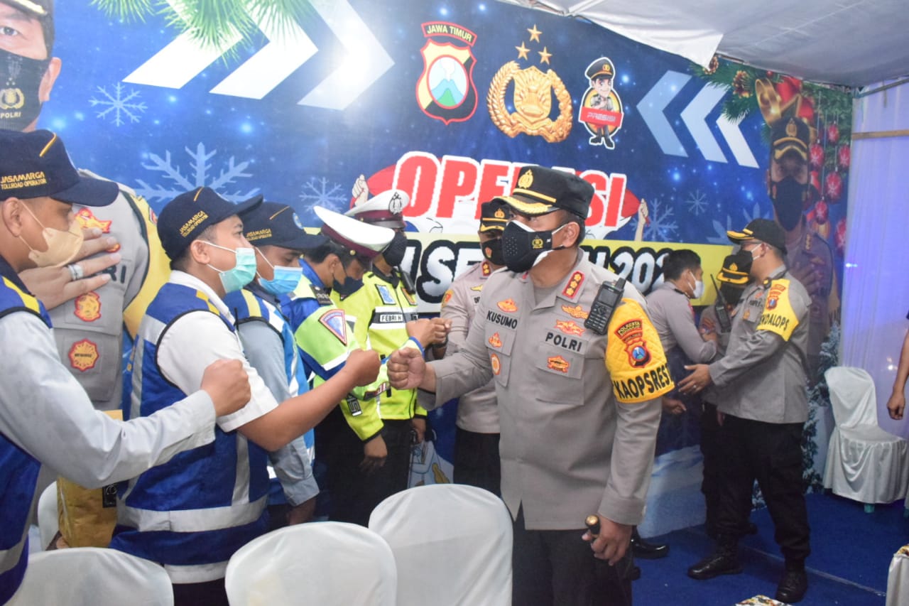 Kapolresta Sidoarjo Kombes Pol. Kusumo Wahyu Bintoro, Senin (27/12/2021), mengecek kesiapan sejumlah Pos Pam dan Pos Yan Operasi Lilin Semeru 2021. Pengecekan dilakukan tidak hanya meliputi sarana maupun prasarana, melainkan juga kesiapan personel gabungan yang bertugas di pos.