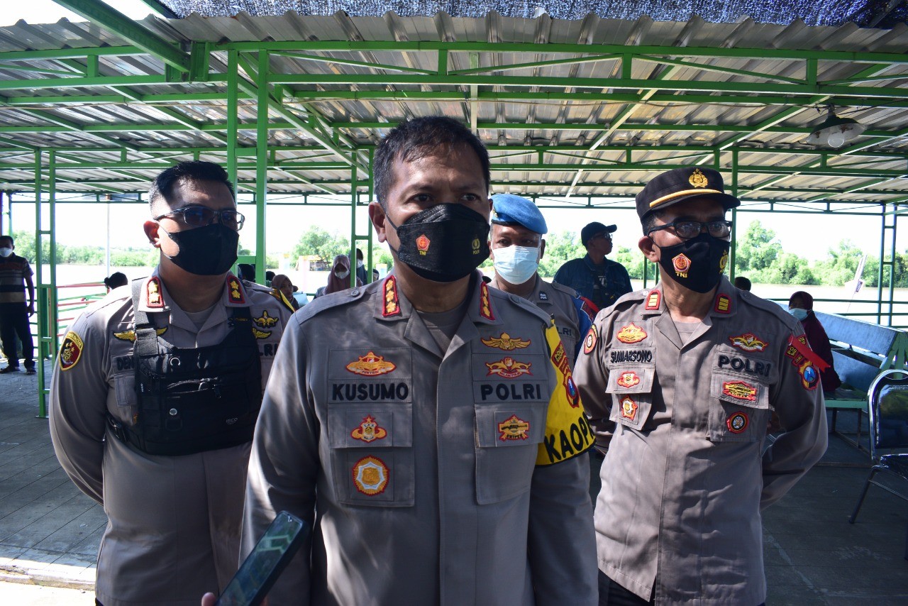 Dengan menggunakan perahu boat, Kapolresta Sidoarjo melihat langsung kondisi Wisata Bahari Tlocor hingga berlayar ke Pulau Lusi yang berada di sekitar ujung sungai Brantas.