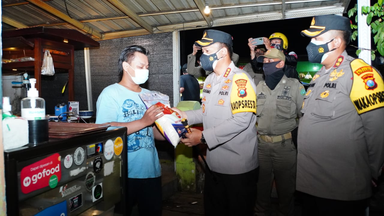 Patroli skala besar dalam rangka penerapan PPKM level 4 tersebut, menyisir tempat usaha, pedagang, juga warung kopi yang masih berjualan melebihi pukul 8 malam. Namun, menariknya personel gabungan yang dipimpin langsung Kapolresta Sidoarjo Kombes Pol. Kusumo Wahyu Bintoro melakukan pendekatan secara humanis kepada masyarakat.