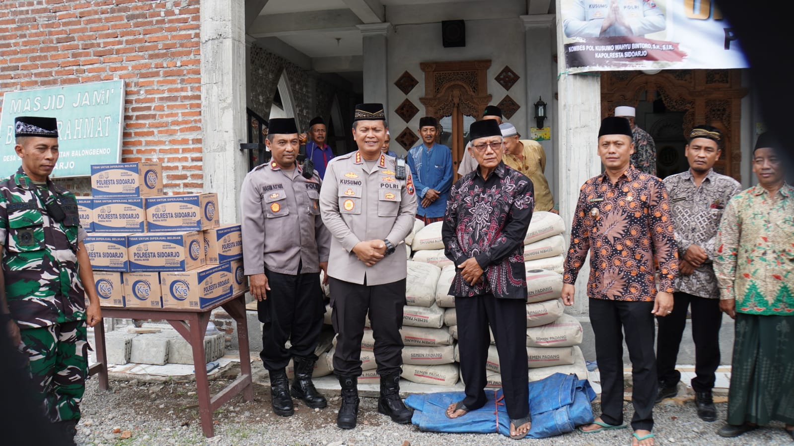 “Di bulan Ramadhan ini, kami ingin berbagi dan membangun rasa peduli anggota kepada tempat ibadah maupun masyarakat. Salah satunya ada masjid yang sedang membangun atau renovasi, kami tindaklanjuti melalui program Gerebek Masjid untuk berikan bantuan material,” jelas Kapolresta Sidoarjo Kombes Pol. Kusumo Wahyu Bintoro.
