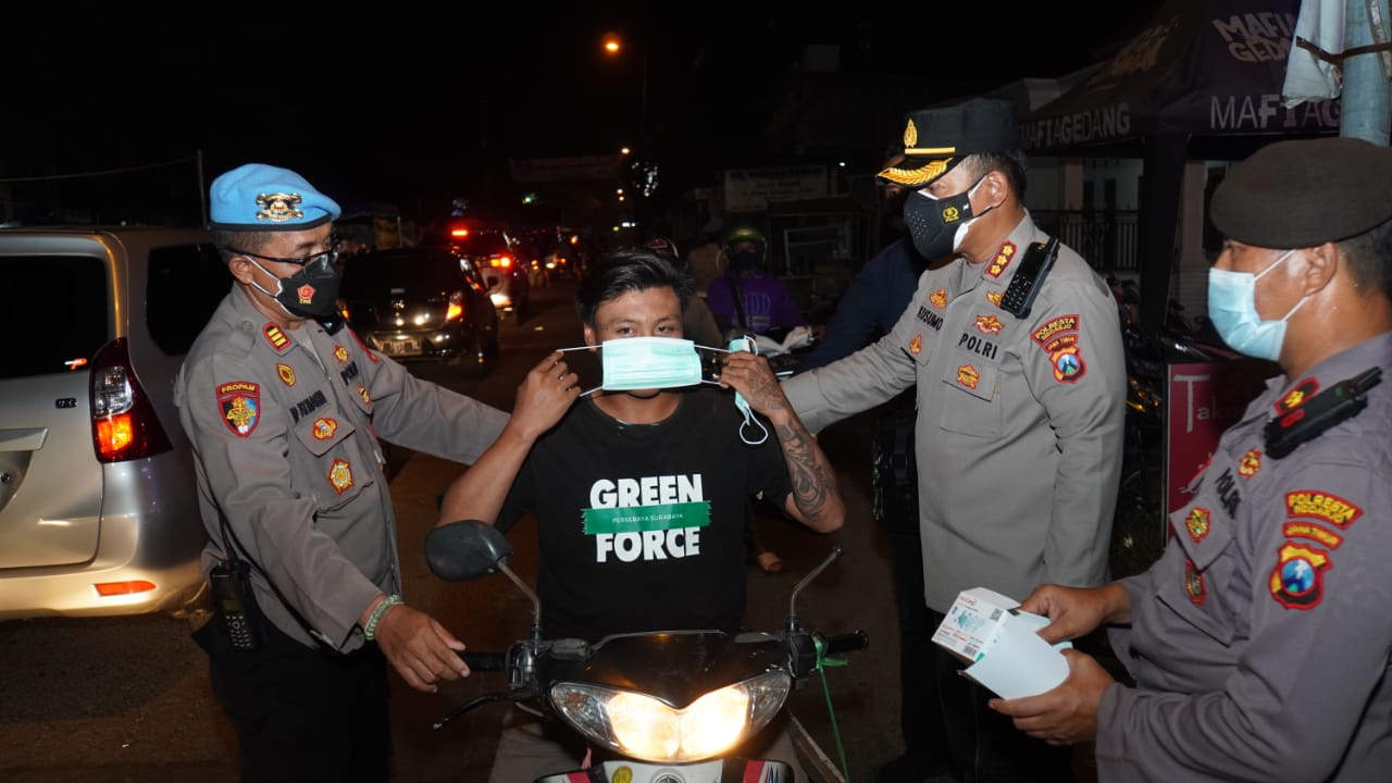 Kapolresta Sidoarjo Komisaris Besar Polisi Kusumo Wahyu Bintoro, Senin (14/2/2022) malam, turun langsung memimpin patroli patroli tersebut, yang juga sebagai upaya menekan laju penyebaran Covid-19.
