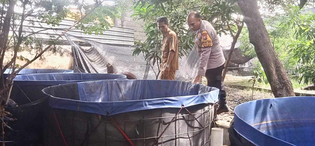 Seperti yang dilakukan oleh Bhabinkamtibmas Desa Wedoro, Polsek Waru, Aiptu Made. Ia turun langsung ke lapangan untuk melakukan monitoring sekaligus memberikan motivasi kepada warga yang mengelola budidaya ikan patin di pekarangan fasilitas umum milik warga, tepatnya di RT 1 RW 3, Desa Wedoro.