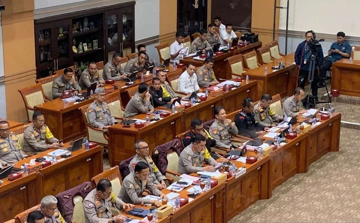 Kapolri Jenderal Pol Listyo Sigit Prabowo absen dalam raker (rapat kerja) bersama Komisi III DPR RI. Pembahasan penegakan hukum pada Pemilu 2024 itu, diwakilkan Kepala Badan Pemelihara Keamanan (Kabaharkam) Polri Komjen Pol Muhammad Fadil Imran.