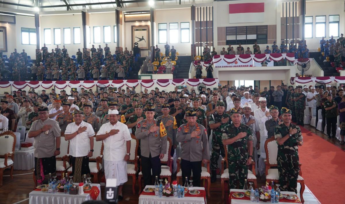 Acara doa bersama lintas agama bersama TNI-Polri dan masyarakat Bali ini digelar di GOR Yudomo, Praja Raksaka Kepaon, Denpasar, Bali, Selasa (19/11/2024). Hadir pula Panglima TNI Jenderal Agus Subiyanto.