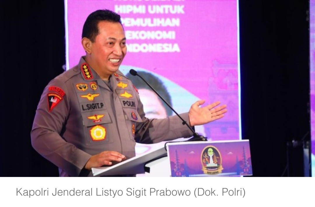 Kapolri Jenderal Listyo Sigit Prabowo mengajak seluruh pengurus maupun anggota Himpunan Pengusaha Muda Indonesia (HIPMI) mengawal serta mendukung kebijakan demi kebijakan yang diambil pemerintah dalam rangka mengupayakan pertumbuhan ekonomi dalam negeri. Sigit juga mengutip pernyataan Presiden Joko Widodo (Jokowi) di Rakernas Hipmi 2021.