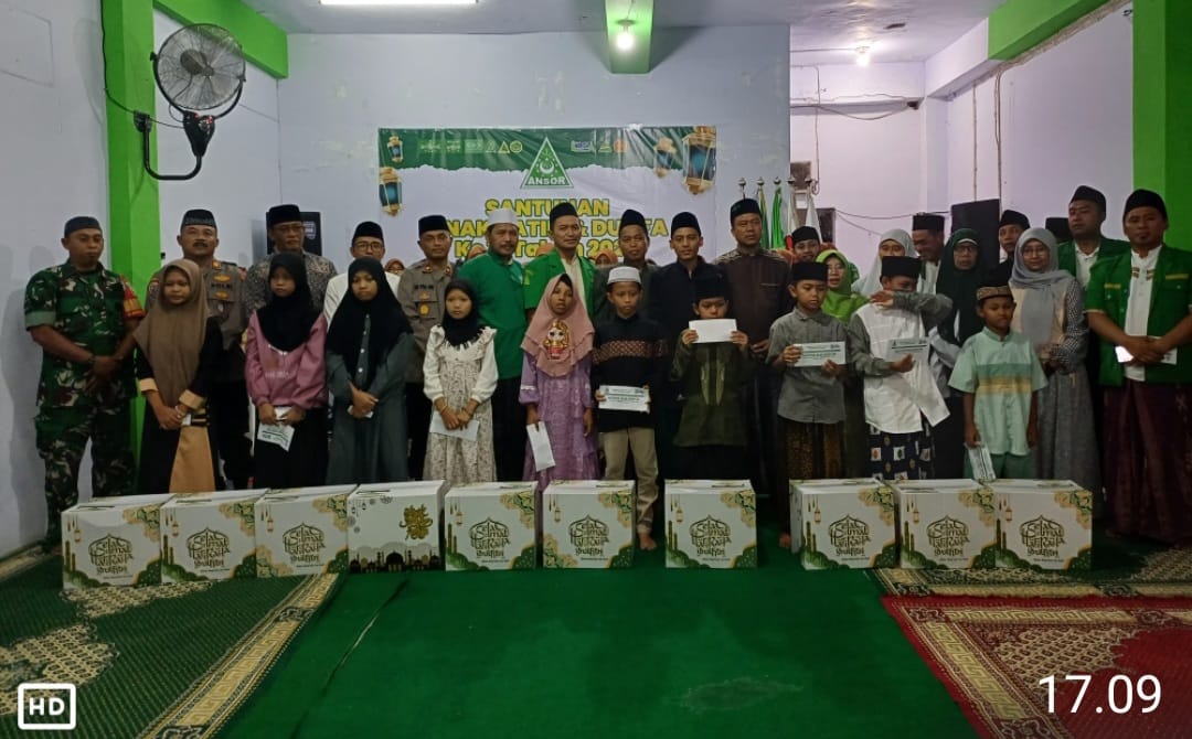 Kapolsek Krian Bersama PAC Ansor Gelar Aksi Sosial, Bagikan Takjil dan Santunan Anak Yatim