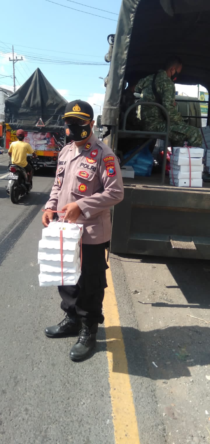 Berbagai cara dilakukan TNI POLRI untuk membantu masyarakat, Tak terkecuali di masa pandemi Covid-19 dan PPKM saat ini. Dengan berbagi kebahagiaan memberikan makanan Nasi kotak kepada tukang becak dan kaum dhuafa.di area pasar mayang