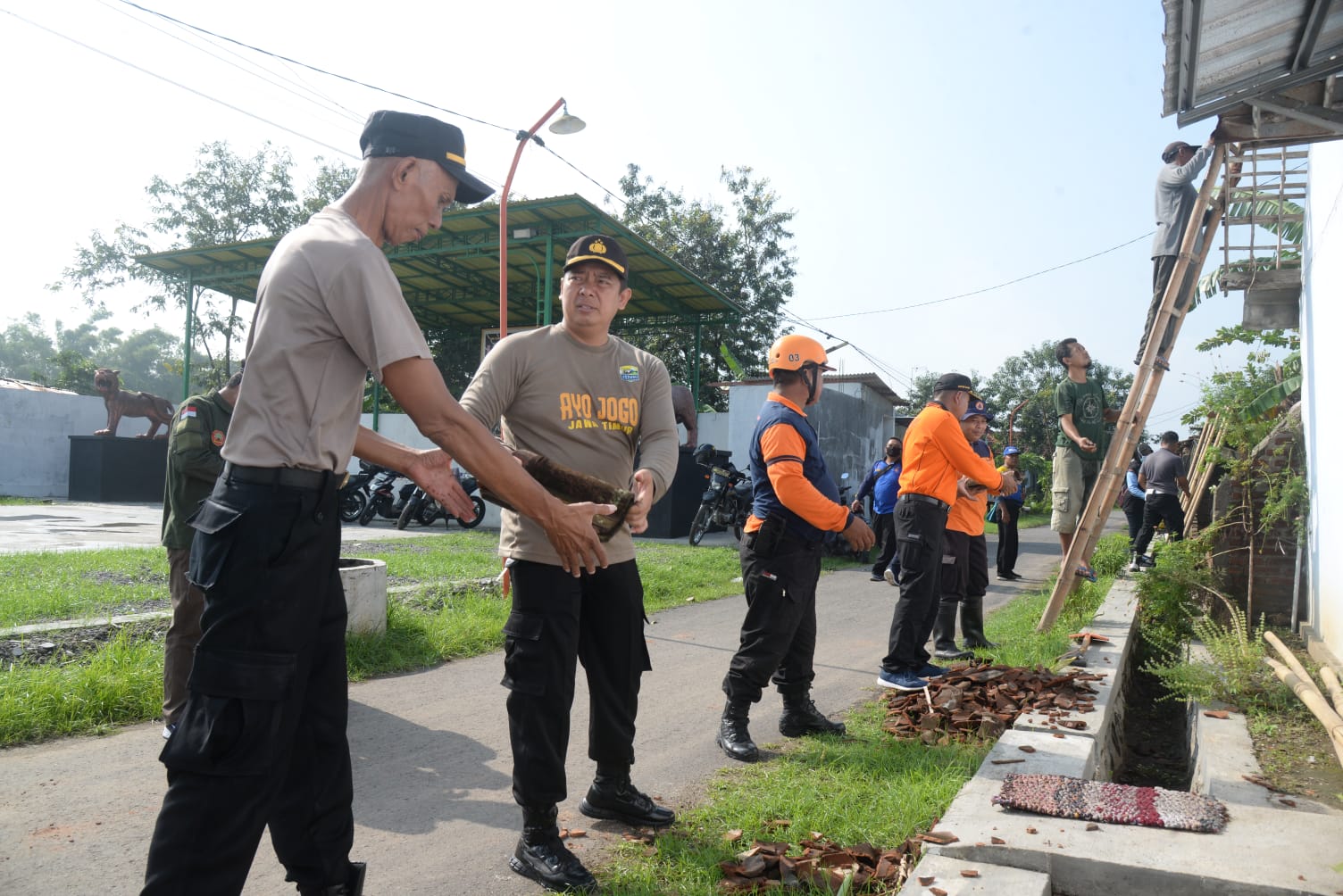Lanjutnya Kerja bakti ini menyasar beberapa bangunan, antara lain rumah milik Suparjo Rt 13 yang mengalami kerusakan pada genteng.