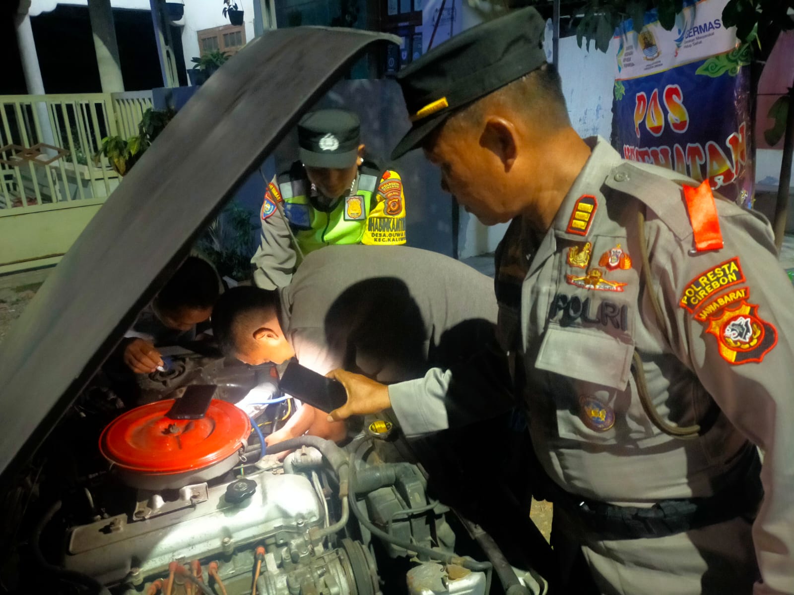 Kapolsek Susukan Polresta Cirebon Cepat Tanggap Bantu Mobil Pemudik yang Sedang Mogok