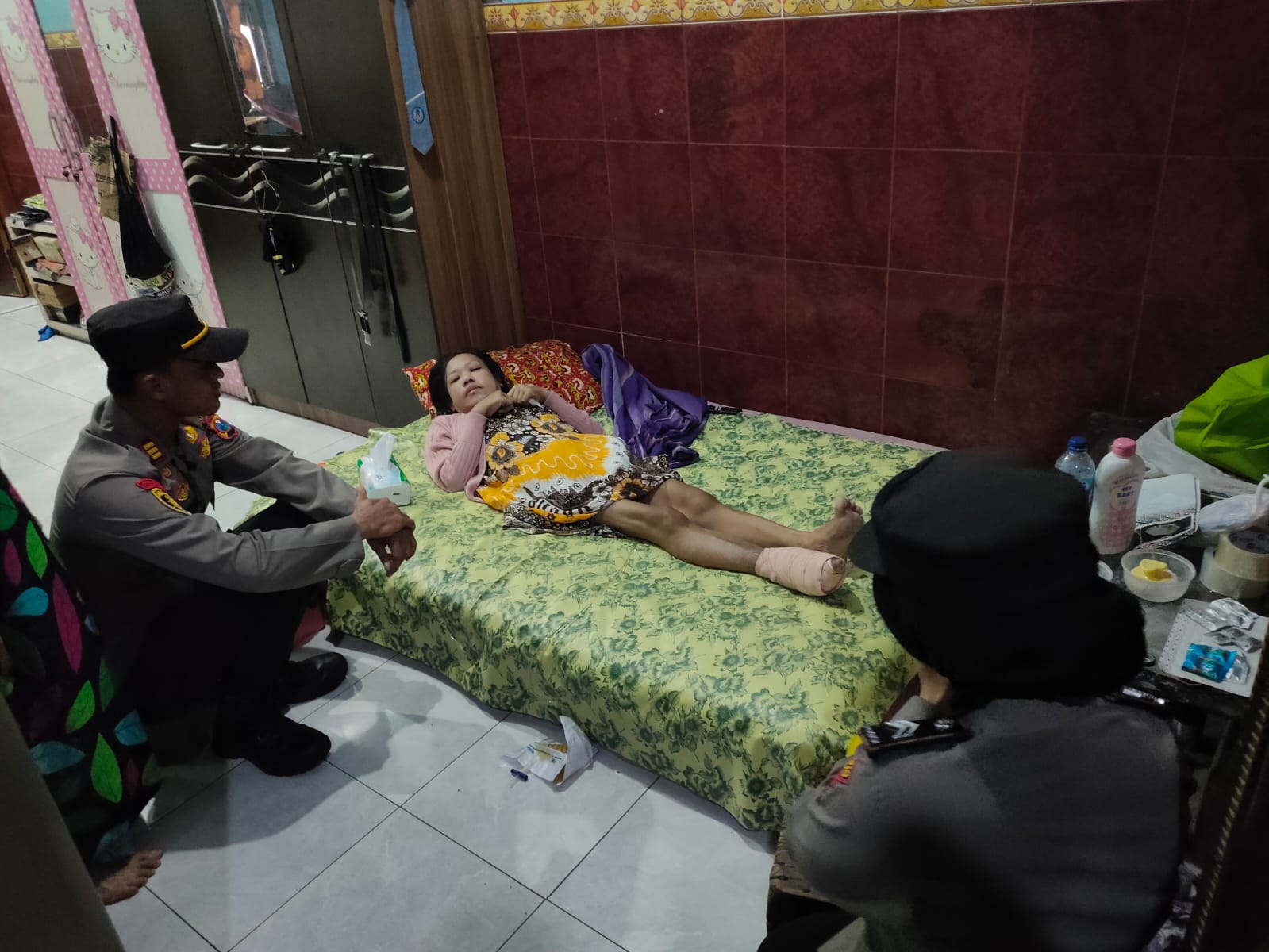 “Mendapatkan informasi dari Bhabinkamtibmas Desa Pilang ada warganya yang sakit diabet dan suaminya tidak bekerja, kami pun bergegas untuk membesuk yang bersangkutan,” ujar AKP Hafid.