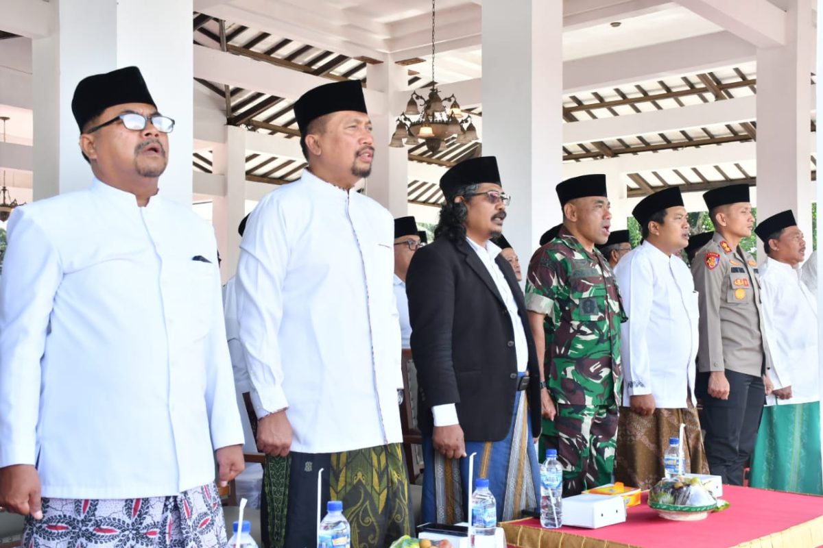 Kasdim 0802/Ponorogo Mayor Inf Agus Budi Cahyono mewakili Komandan Kodim 0802/Ponorogo Letkol Inf Dwi Soerjono menghadiri Apel Besar Hari Santri Nasional tahun 2025 bertempat di Aloon Aloon Kota / Kabupaten Ponorogo, Rabu (22/10/2025).