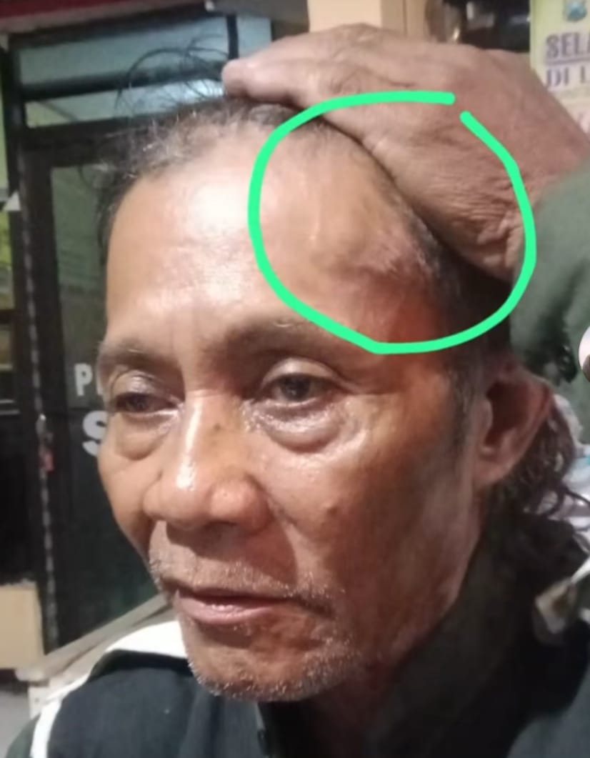 “Ini surat laporannya, kepala saya sebelah kiri benjol gak tau, sudah di visum saya bayar sendiri habis 70 ribu, ini ada obatnya” ucap Korban Zainal Didampingi Advokat Sakty.