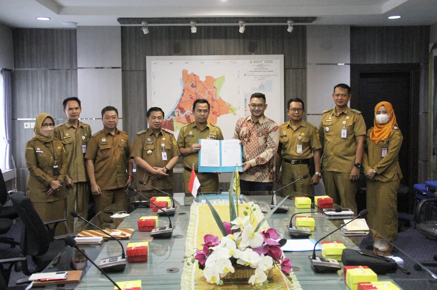 Wali Kota Banjarmasin, H Ibnu Sina menyaksikan Sekretaris Daerah, Ikhsan Budiman, menandatangani perjanjian kerjasama pengolahan kawasan di sekitar kampung Ketupat dengan PT Juru.id, yang berlangsung di Ruang Rapat Baiman 2. Senin, (01/08/2022).