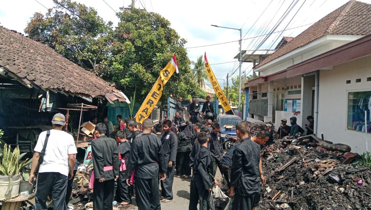 Kebakaran Rumah Warga, Pendekar PSHT Ranting Patrang Lakukan Bersih Bersih