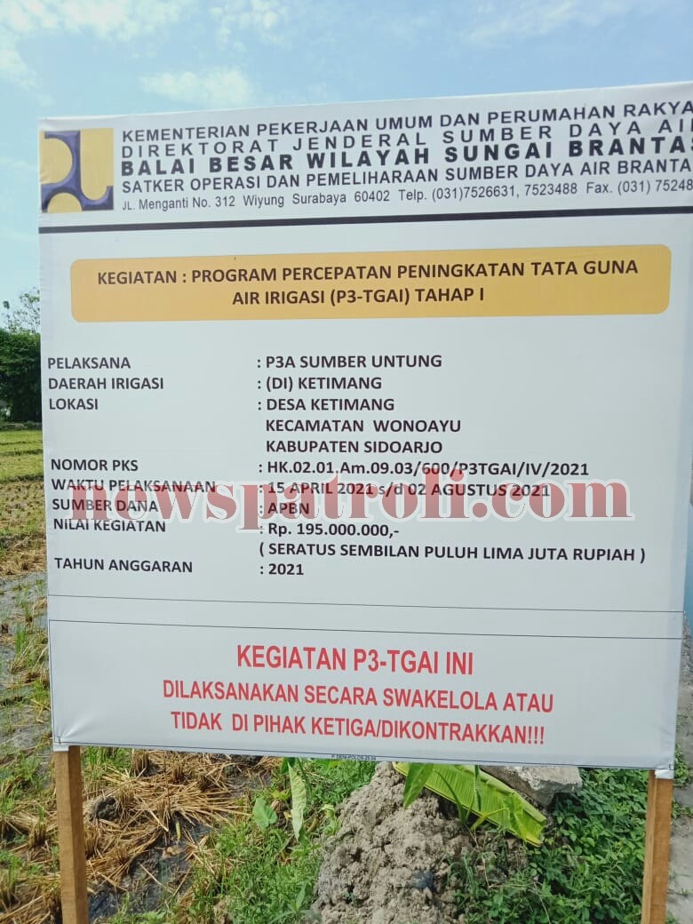 Namun berbeda dengan pelaksanaan di desa Ketimang Kecamatan Wonoayu. Program proyek P3-TGAI yang dikerjakan oleh kontraktor dengan dahli warga Ketimang sendiri.