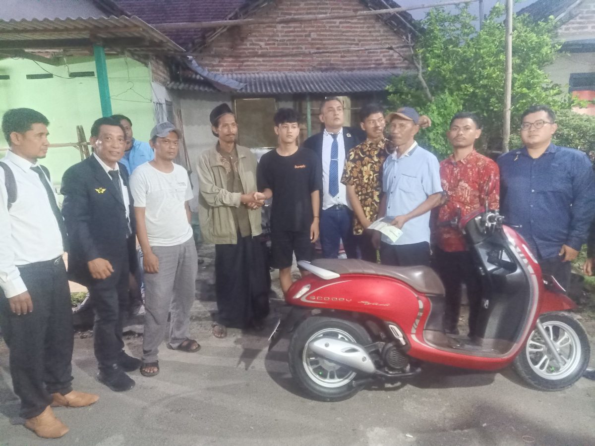 Keluarga Tersangka didampingi Para Advokat saat menyerahkan penggantian Sepeda Motor Honda jenis Scoopy kepada korban Aksi Pembegalan yang sempat viral