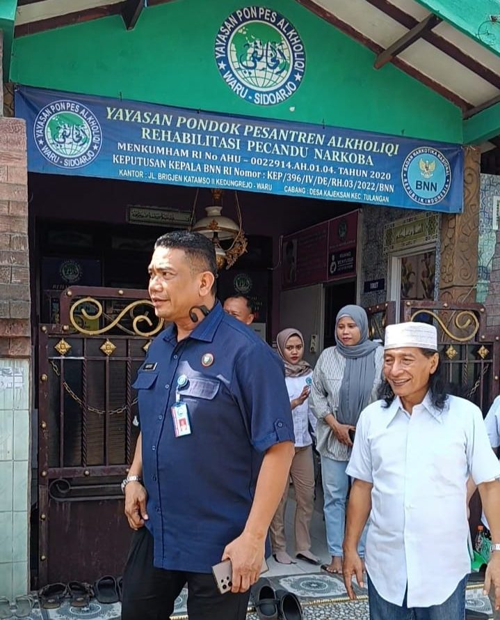 Kepala Badan Narkotika Nasional Kabupaten (BNNK) Sidoarjo, Kombes Pol. Gatot Soegeng Soesanto, S.H., melakukan kunjungan kerja ke Yayasan Pondok Pesantren (YPP) Al Kholiqi Rehabilitasi Pecandu Narkoba, yang berlokasi di Jalan Brigjen Katamso II, Desa Kedungrejo, Kecamatan Waru, Kabupaten Sidoarjo, Selasa (15/6/2025).