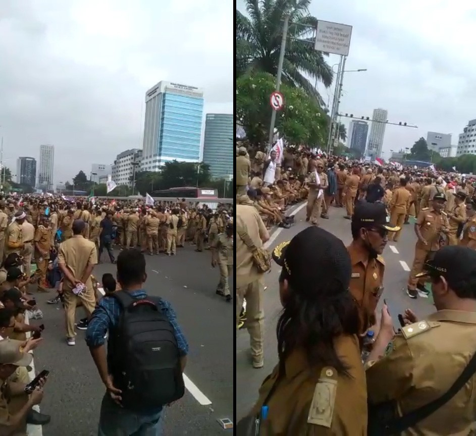 Dalam aksinya Ribuan Kepala Desa ini meminta perpanjangan masa jabatan kepala Desa dari semula enam tahun menjadi sembilan tahun tiap periode saat mereka melakukan aksinya Selasa (17/1/2023).