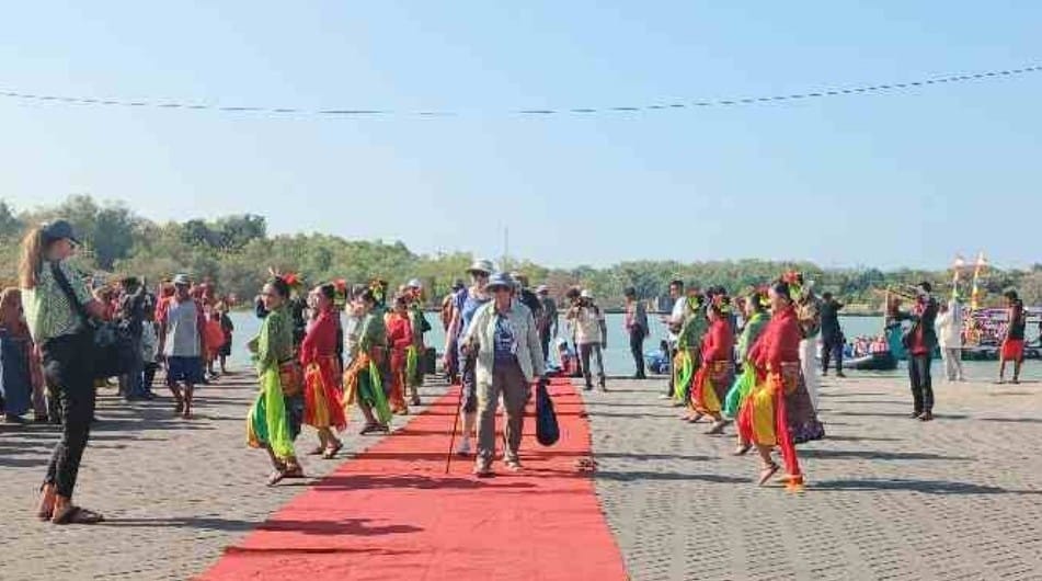 Kedatangan wisatawan asing di pelabuhan Kalianget sekira pukul 09.00 WIB disambut hangat oleh Moh. Iksan M.Si, selaku Kepala Dinas Kebudayaan Kepemudaan Olahraga dan Pariwisata (Disbudporapar) Kabupaten Sumenep. Minggu (04/08/2024)