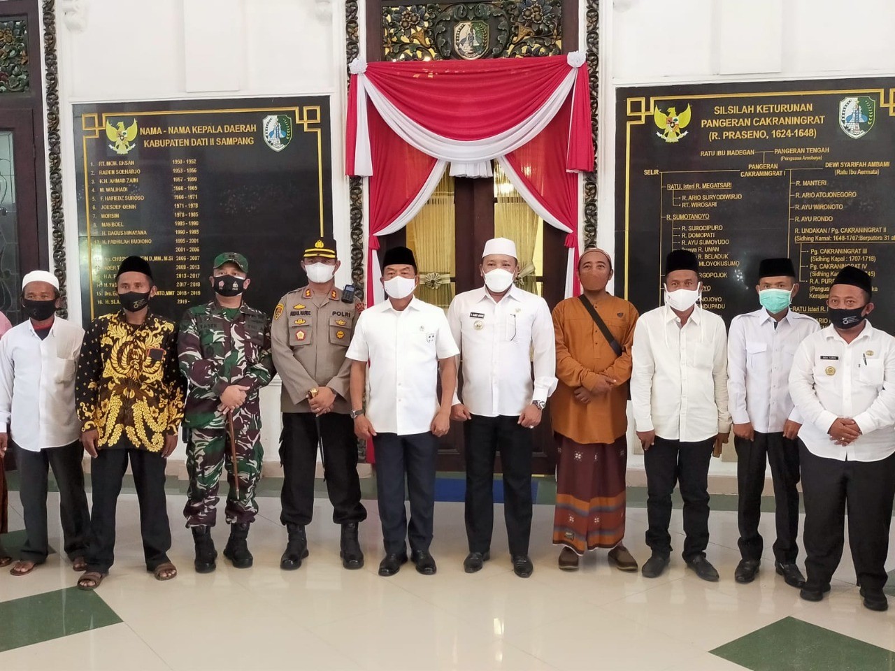 Kapolres Sampang AKBP Abdul Hafidz S.IK, M.Si bersama Bupati Sampang H. Slamet Junaidi, Dandim 0828 Sampang Letkol Arm Mulya Yaser Kalsum, dan Ketua DPRD Sampang Fadol mendampingi Kepala Staf Kepresidenan RI saat memberikan keterangan kepada wartawan.
