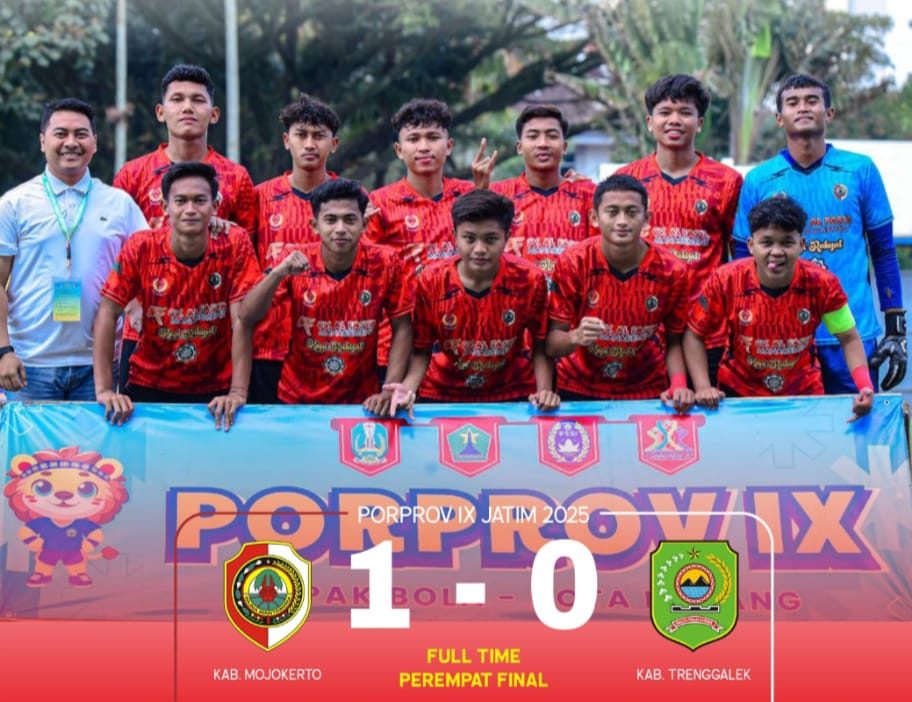 Tim sepak bola Asosiasi Kabupaten (Askab) PSSI Kabupaten Mojokerto memastikan langkahnya yang telah mengantongi tiket menuju babak semifinal dalam ajang spektakuler Pekan Olahraga Provinsi (PORPROV) IX Jawa Timur 2025.