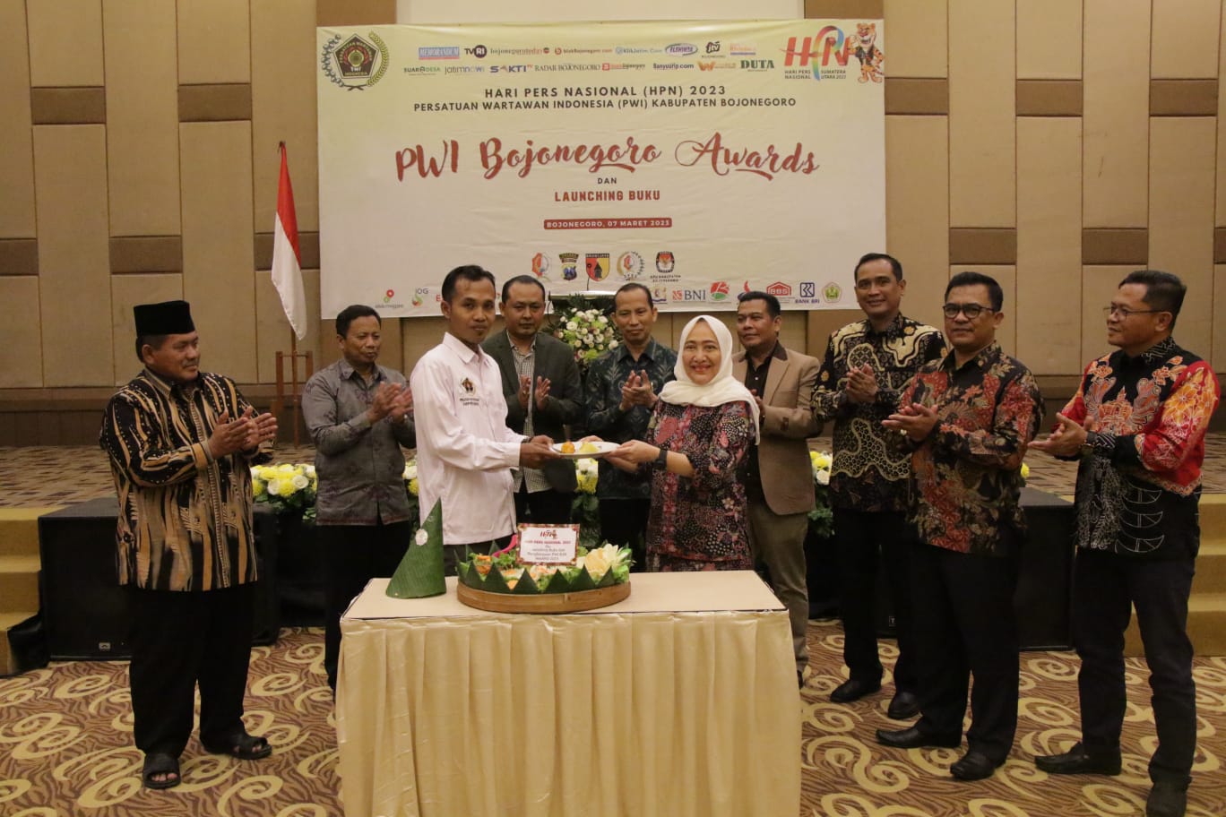 Puncak kegiatan Hari Pers Nasional (HPN) yang digelar Persatuan Wartawan Indonesia (PWI) Bojonegoro di Hotel Dewarna, Selasa malam (7/3/2023) berlangsung meriah. Pers diharapkan bisa ikut menegakkan nilai-nilai demokrasi.