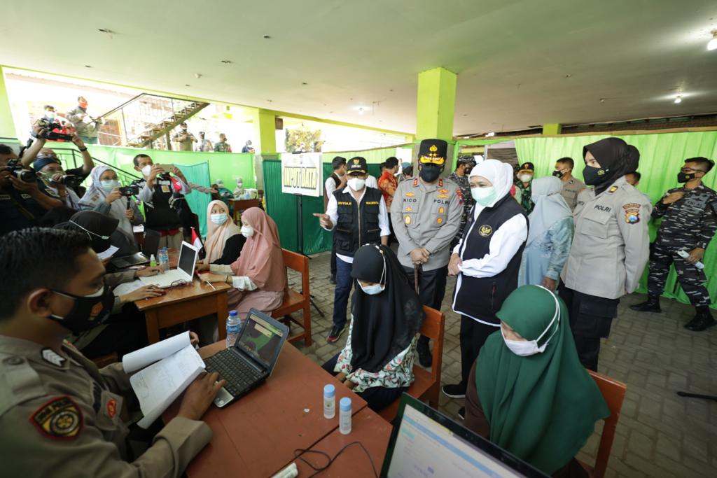 Forkopimda Jawa Timur, Sabtu siang (7/8/2021) melakukan pengecekan pelaksanaan vaksinasi Merdeka berbasis komunitas Pensantren di Pondok Pesantren (Ponpes) Sabillurrosyad Gasek, Malang.