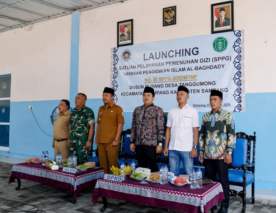 Wakil Bupati (Wabup) KH. Akhmad Mahfudz, menghadiri peluncuran Satuan Pelayanan Pemenuhan Gizi (SPPG) Yayasan Pendidikan Islam Al-Baghdady di Desa Tanggumong, Kecamatan Sampang Madura Jawa Timur, Rabu (07/10/2025).
