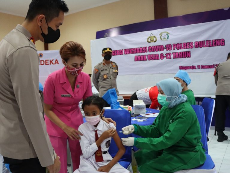 Polres Buleleng,Klinik Pratama Polres Buleleng melaksanakan Gerai Vaksin Presisi Bhakti Kesehatan Kick Off Vaksinasi anak pada usia 6-11 tahun yang dilakukan pada hari Selasa 11/01/2022 yang dihadiri oleh Ibu Ketua Cabang Bhayangkari Polres Buleleng yg didampingi oleh Kapolres Buleleng AKBP Andrian Pramudianto S.I.K,S.H,M.SI untuk memberikan motivasi dan semangat kepada anak, dimana kegiatan juga dilaksanakan di beberapa tempat/desa yang didatangi oleh ratusan anak-anak dan masyarakat umum lainnya untuk mendapatkan Vaksin.