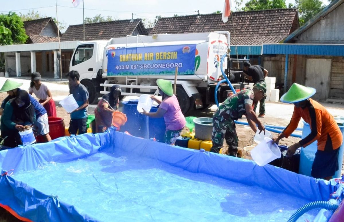 Diungkapkan oleh Danramil 0813-15/Ngraho, Kapten Arm Lugiantoro, bahwa penyaluran bantuan air bersih yang dilakukan oleh Keluarga Besar Kodim 0813 Bojonegoro tersebut merupakan wujud kepedulian TNI kepada warga masyarakat yang dilanda kekeringan.