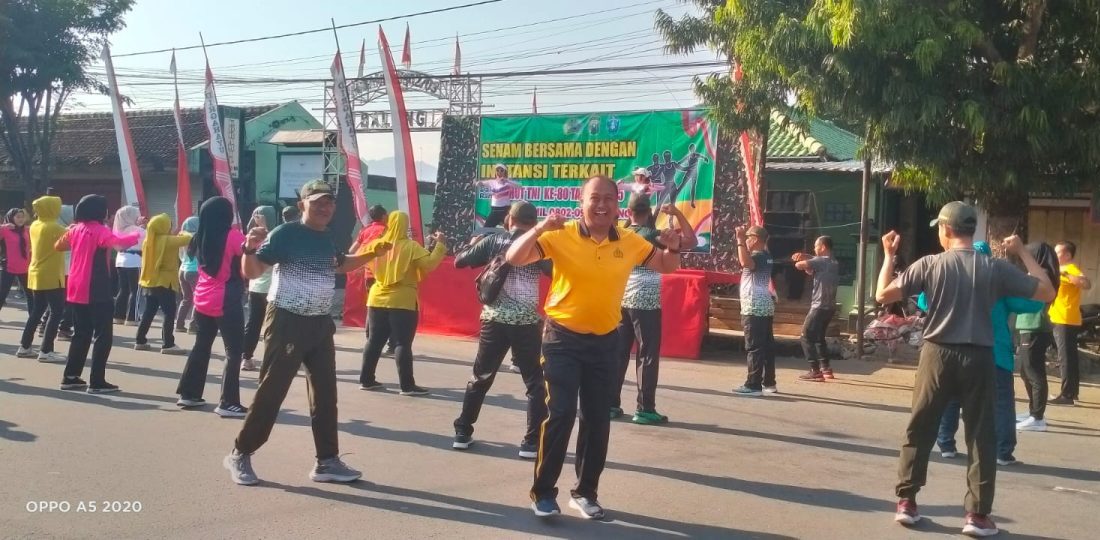 Kodim 0802/Ponorogo menggelar olahraga bersama (senam) bertempat di Makoramil Tipe B 0802/09 Balong, Rabu (08/10/2025).