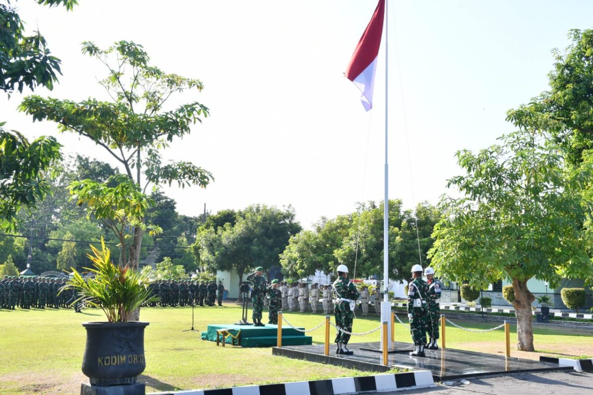 “ Pastikan selalu bendera Merah Putih berkibar tegak di wilayah tugas kalian, dan pastikan tidak ada sejengkal pun tanah air yang digoyahkan oleh kepentingan pihak lain yang bertentangan dengan Pancasila, “ tegas Panglima TNI dalam Amanat yang dibaca Irup.