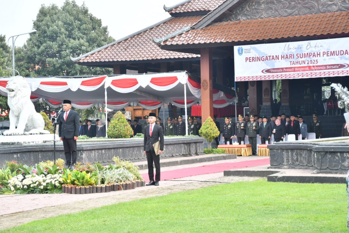Dihadapan peserta Upacara, Irup membaca sambutan Hari Sumpah Pemuda Ke 97 Tahun 2025 dari Menteri Pemuda dan Olahraga Republik Indonesia Erick Thohir yang isinya diantaranya menyampaikan terkait partisipasi aktif para generasi muda dalam kemajuan bangsa terlebih dihadapkan pada zaman yang serba cepat dan penuh perubahan.