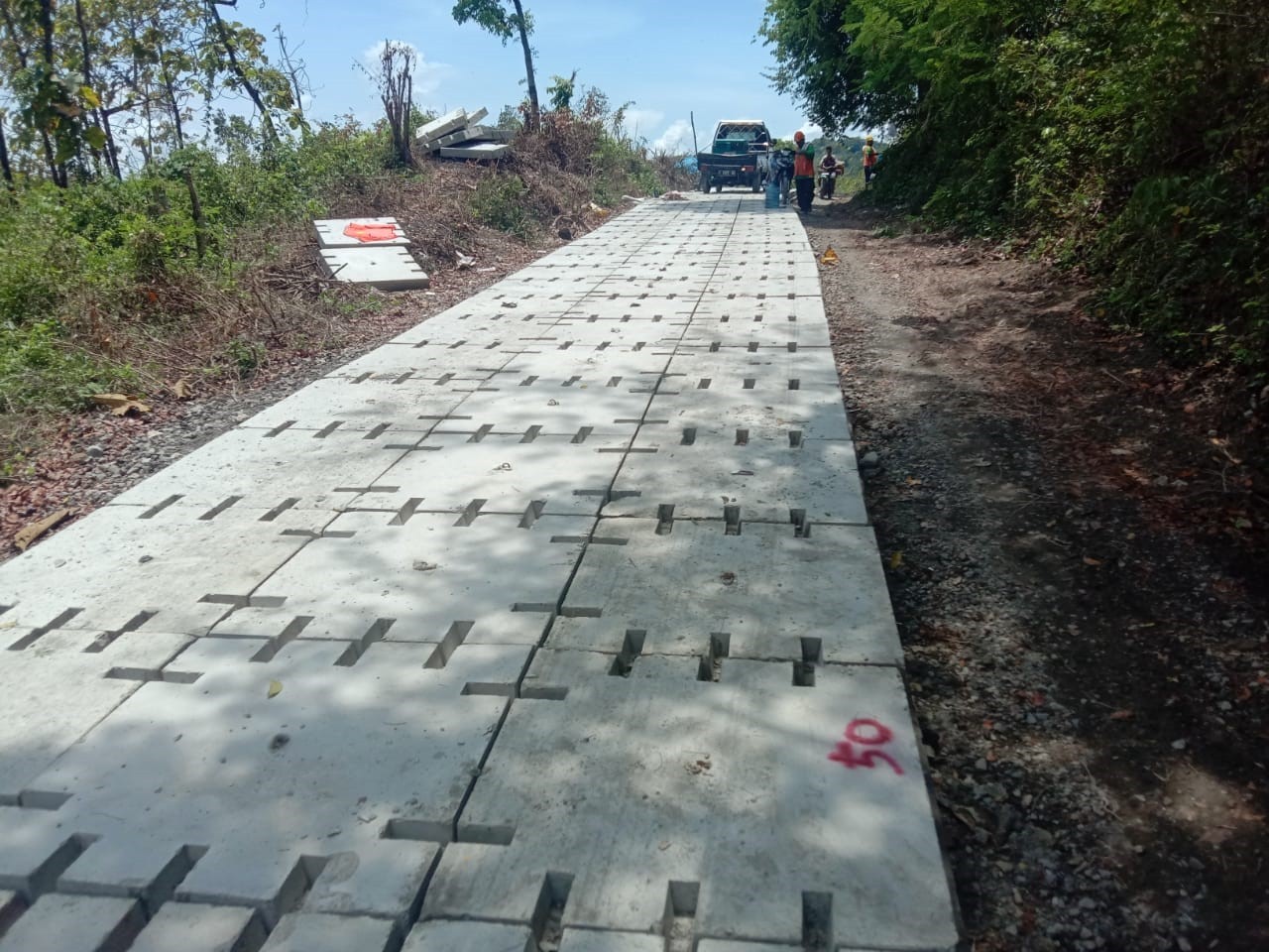 Pejabat Fungsional Jalan BM 1 Dinas PU BIMA PR Kabupaten Bojonegoro Anton Sugiarto, ST menjelaskan, peningkatan jalan desa di kawasan perhutani ini menggunakan beton precast. Sinergi Pemkab dan Perhutani ini untuk meningkatkan kesejahteraan masyarakat di desa yang berada pada kawasan hutan Perhutani.