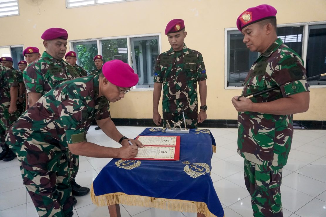 Komandan Resimen Kavaleri 2 Marinir (Danmenkav 2 Mar) Letkol Mar La Ode Jimmy Herizal Rahman, M.Tr.Hanla., M.M., memimpin serah terima jabatan Perwira Staf Intelijen dari Letkol Mar Untung Subagyo, S.H. kepada Letkol Mar Beni Rahim, S.Sos. di Gedung Serbaguna Yontankfib 2 Mar, Kesatrian Marinir Soetedi Senaputra Karangpilang, Surabaya, Jawa Timur. Senin (18/03/2024).