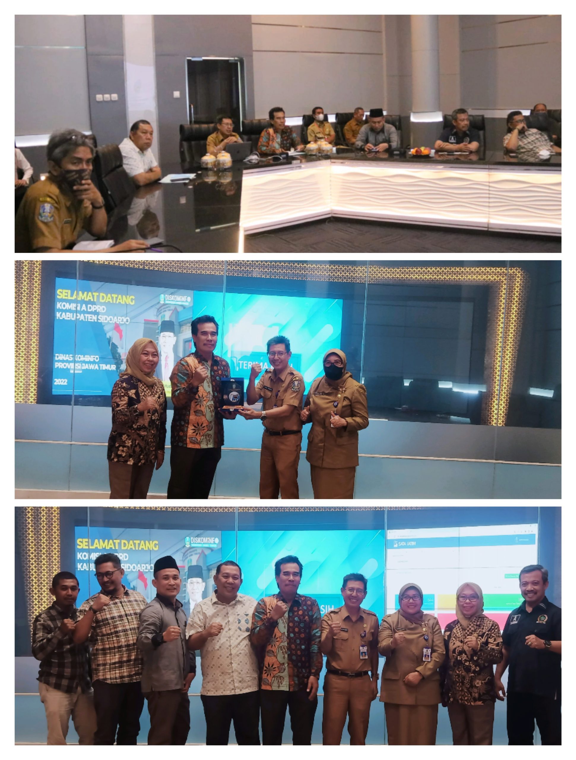 Kunjungan ini dipimpin Wakil Ketua Komisi A DPRD Kabupaten Sidoarjo, H Haris bersama sejumlah anggota Komisi A lainnya. Rombongan ditemui Kabid Aplikasi Informatika, Achmad Fadlil Chusni dan Kepala Bidang Infrastruktur TIK,  Patriana Dyah  di ruang Komando Center Kominfo Jatim.