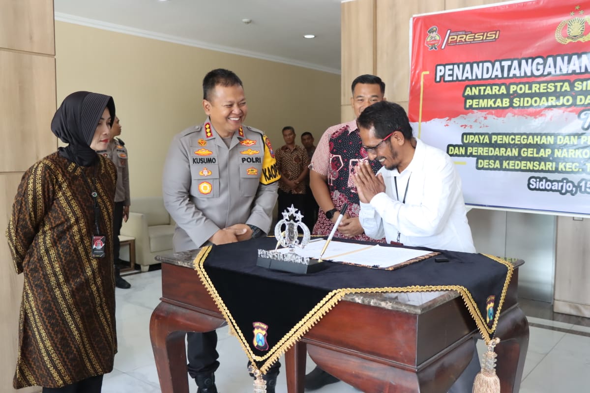 Kapolresta Sidoarjo Kombes. Pol. Kusumo Wahyu Bintoro menjelaskan, dilakukannya penandatanganan kesepakatan bersama ini merupakan wujud komitmen semua pihak dalam upaya memberantas penyalahgunaan serta peredaran narkoba.