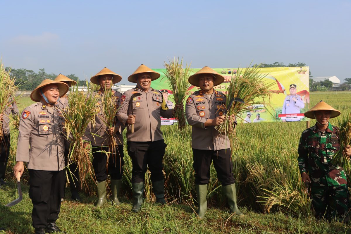 Komitmen Polri Mendukung Program Pemerintahan Prabowo-Gibran, Polres Wonogiri Gelar Panen Raya Padi di Selogiri