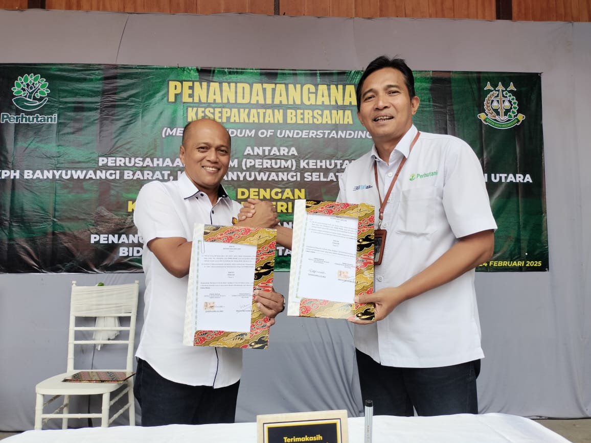 Dalam rangka menjaga konsistensi dalam pengelolaan hutan secara lestari, Perhutani Banyuwangi Raya memperkuat sinergitas dengan Kejaksaan Negeri (Kejari) Banyuwangi. Hal ini diwujudkan melalui penandatanganan Memorandum of Understanding (MoU) atau kesepakatan bersama tentang penanganan masalah hukum bidang Perdata dan Tata Usaha Negara (Datun) pada, Senin (24/2/2025).
