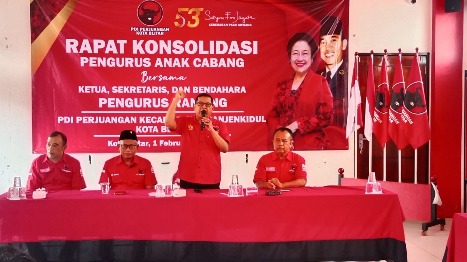 Dewan Pimpinan Cabang (DPC) PDI Perjuangan Kota Blitar menggelar rapat konsolidasi bersama jajaran Pengurus Anak Cabang (PAC) dan pengurus KSB ranting dari tiga kecamatan se-Kota Blitar, Minggu (1/2/2026). Kegiatan yang berlangsung di Kantor DPC PDI Perjuangan Kota Blitar ini menjadi momentum peneguhan soliditas organisasi sekaligus penegasan garis komando partai.