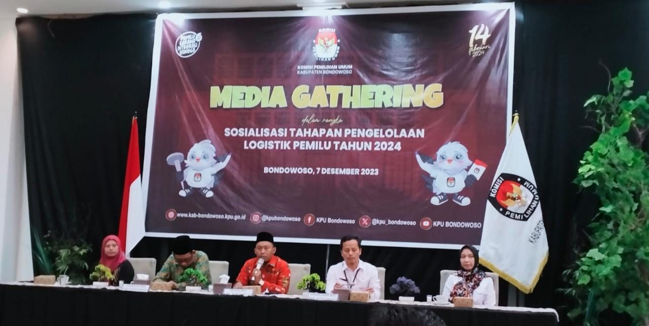 Komisi Pemilihan Umum (KPU) kabupaten Bondowoso gelar kegiatan Media Gathering dalam rangka sosialisasi tahapan pengelolaan logistik pemilu tahun 2024 bersama Pimpinan / Kepala Biro media Cetak, Online dan massa kabupaten Bondowoso.