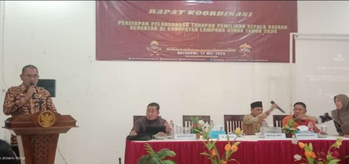 Komisi pemilihan Umum ( KPU ) kabupaten Lampung Utara, bersama Pemerintah Kabupaten Lampung Utara melaksanakan Rakor (Rapat Koordinasi) Persiapan Pelaksanaan Pemilihan Kepala Daerah Serentak pada 2024.