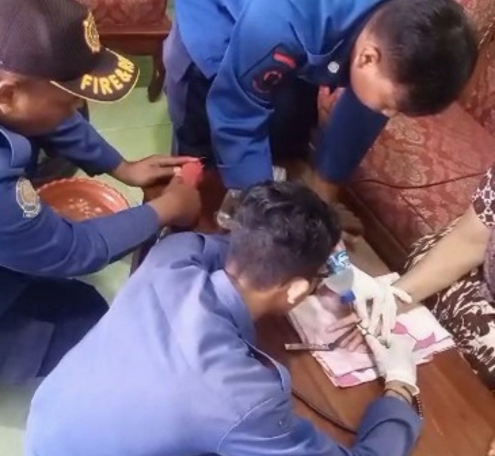 Fadli warga Pilang, Kecamatan Wonoayu menelepon Call Center 112 dengan keluhan bahwa cincin Karomin (neneknya) usia 64 tahun tidak bisa dilepas dari jarinya dan membuat jari neneknya membengkak. (30/7/2023).
