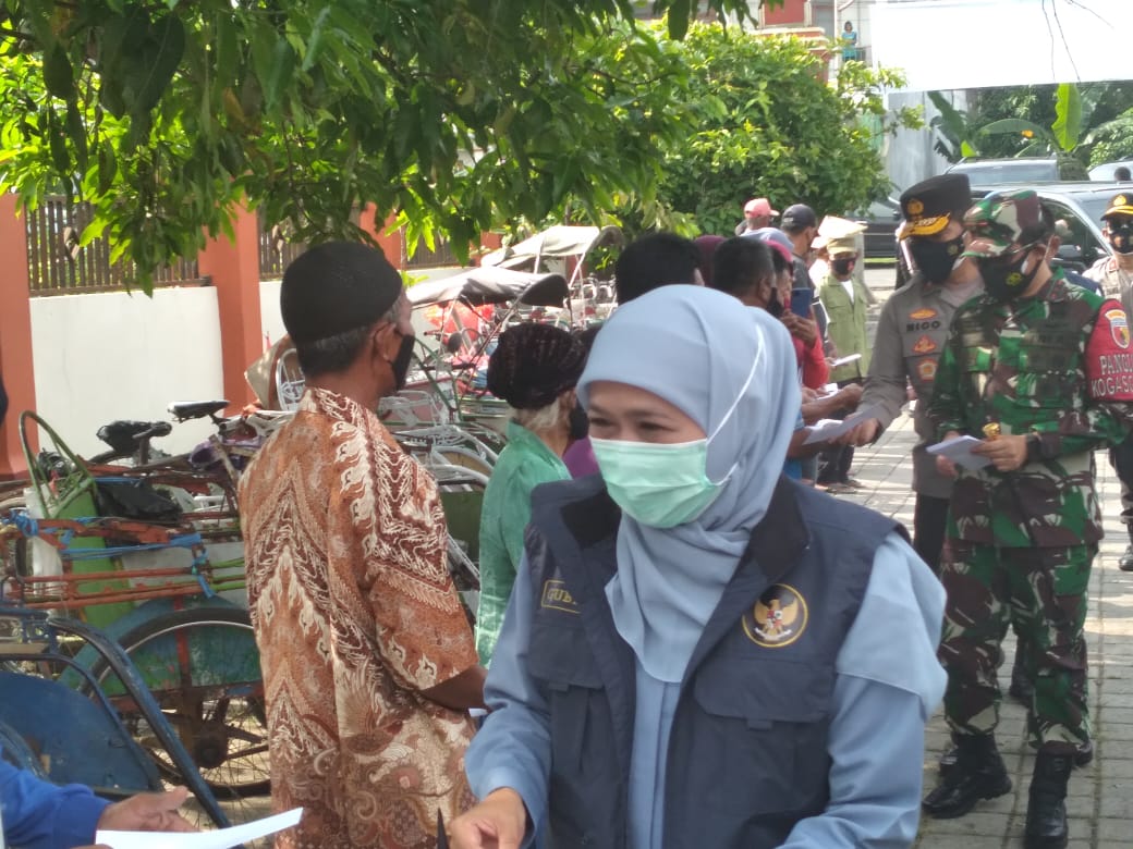 Setelah laporan singkat yang disampaikan oleh Camat Jiwan yang didampingi oleh Danramil Jiwan dan Kapolsek Jiwan Rombongan FORKOPIMDA JATIM meninjau Ruang Isolasi bagi PMI, dilanjutkan Pemberian Santunan dan Pembagian sembako kepada sekitar 50 orang dari Lansia, buruh tani, tukang becak, kulibangunan.